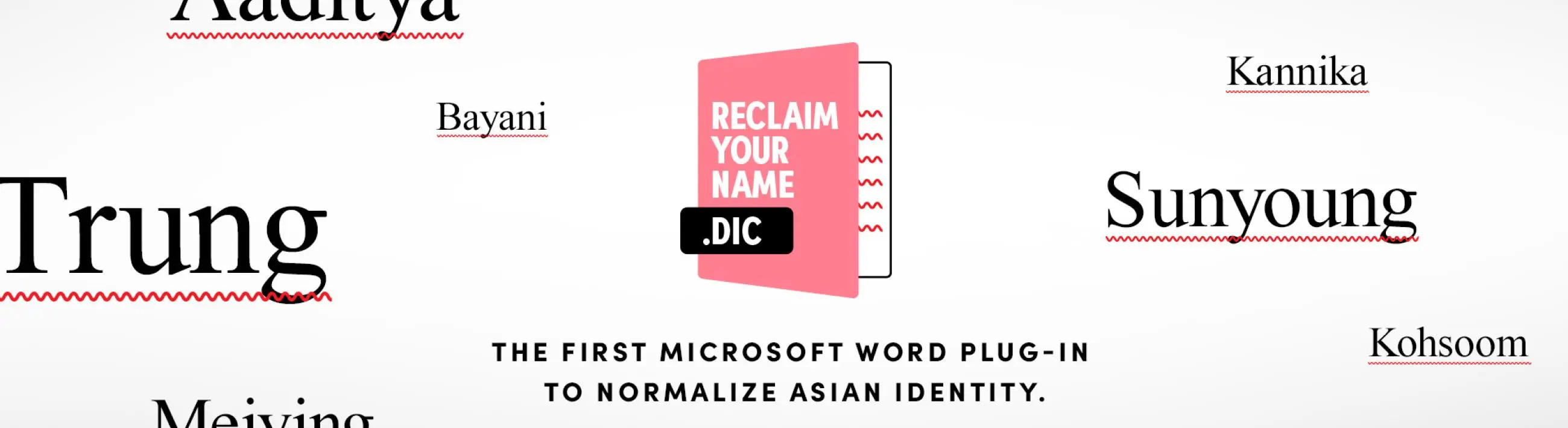 EXECUTION In partnership with Elimin8Hate, Citizen created a campaign to combat discrimination and empower Asian-Canadians to reclaim their names. We developed the first custom dictionary of Asian names – a free .dic file in Microsoft Word containing over 8,000 unique monikers from over a dozen countries. We interviewed several Asian-Canadians who experienced name discrimination and recorded their reactions to seeing the red underline disappear from their name. The campaign was amplified through YouTube pre-roll ads, OOH ads and strategic media relations.